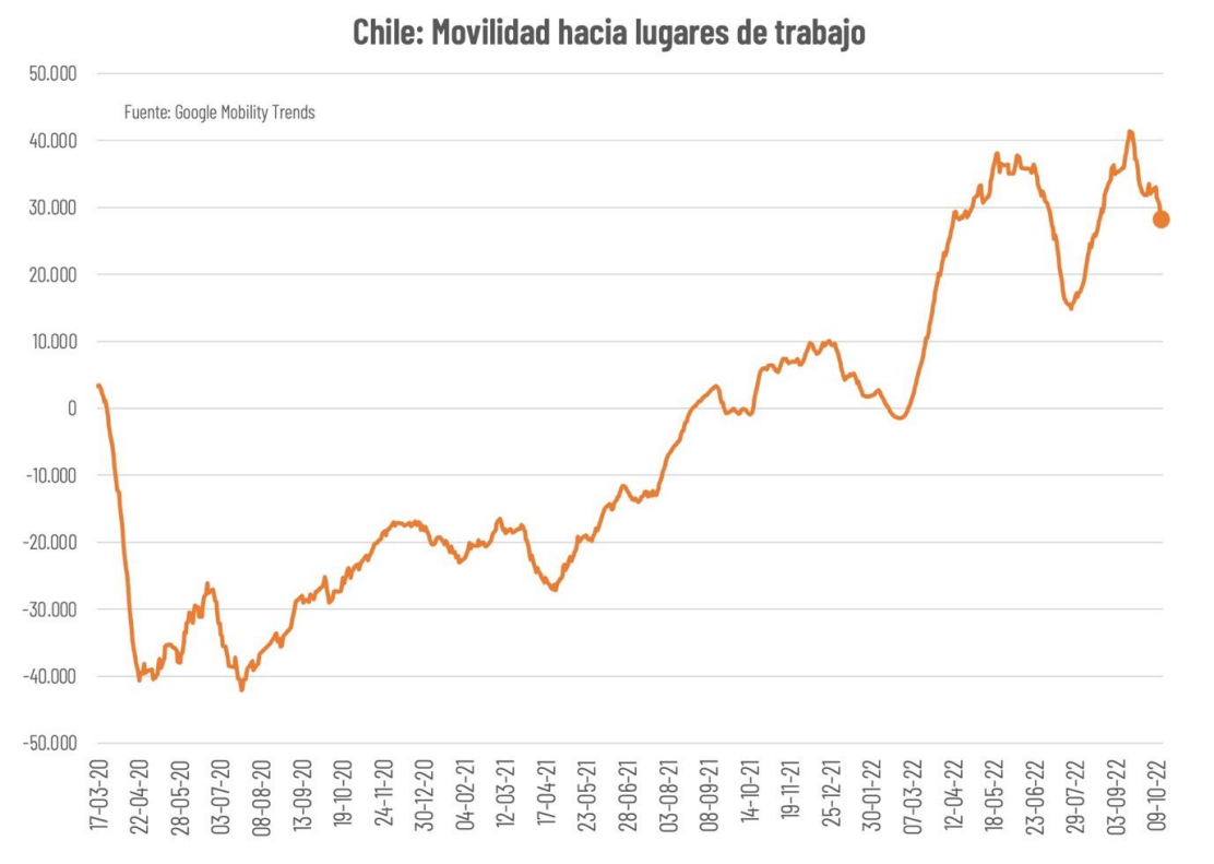 Esta mayor intensidad en el interés por el trabajo a distancia posiblemente está relacionado con el fuerte aumento en la movilidad que se registra en los últimos meses, a niveles muy superiores incluso a los pre-pandemia, lo que genera mayores costos en tiempos de desplazamiento y sensación de inseguridad en los trayectos, entre otros aspectos.