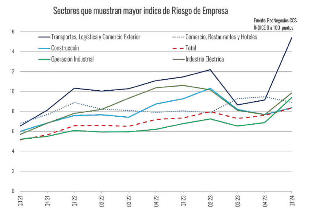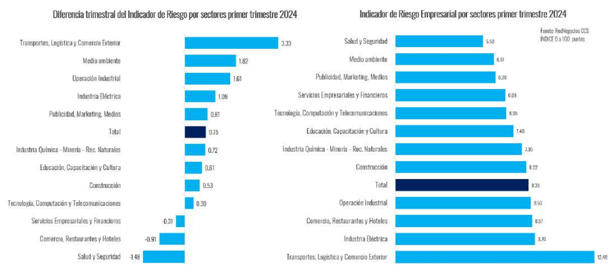 Al margen de las variaciones, los sectores que mostraron los mayores niveles de riesgo en la primera parte del año fueron Transportes, Logística y Comercio Exterior (12,48 puntos); y el sector Eléctrico, con un índice de 9,86 puntos.