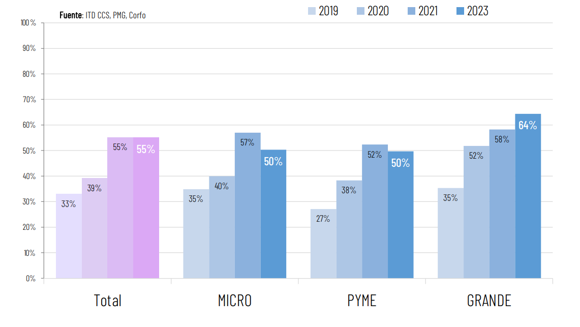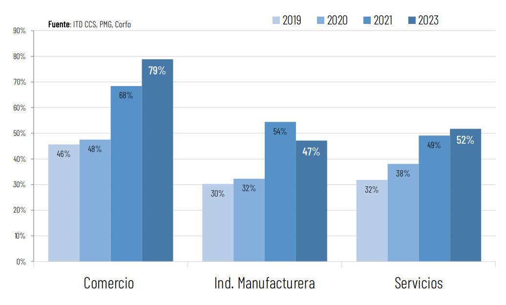 Revisa estadísticas como % de empresas que usa E-Commerce, % de las ventas que se realizan por medios digitales año 2023. % que usa Marketing Digital, entre otros.